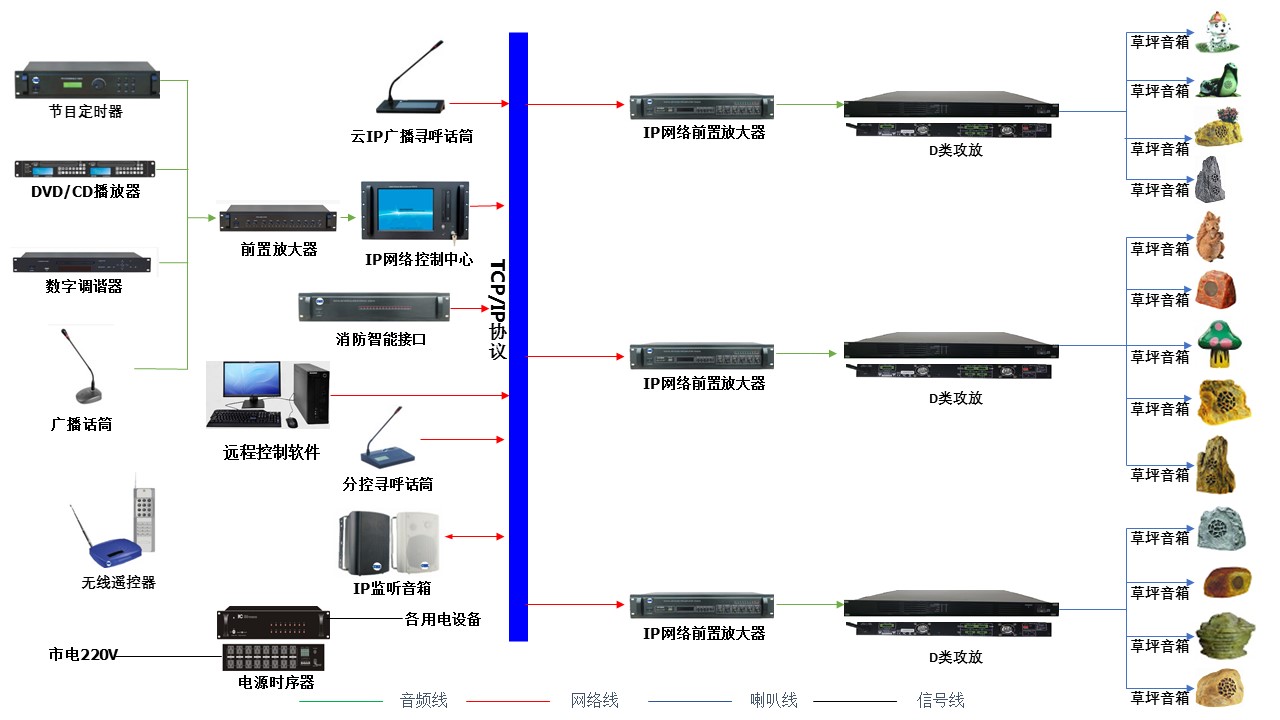 根据以上分析,园区广播系统选择先进的TCP/IP网络广播系统是最佳的应用方式。
