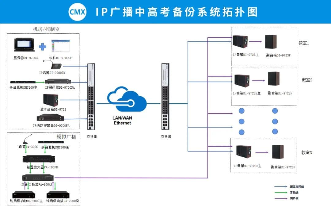1. 考试刚需:中高考等听力考试对稳定性要求极高,传统单链路系统故障可能影响考试公平,曾出现因系统故障导致重考的情况。